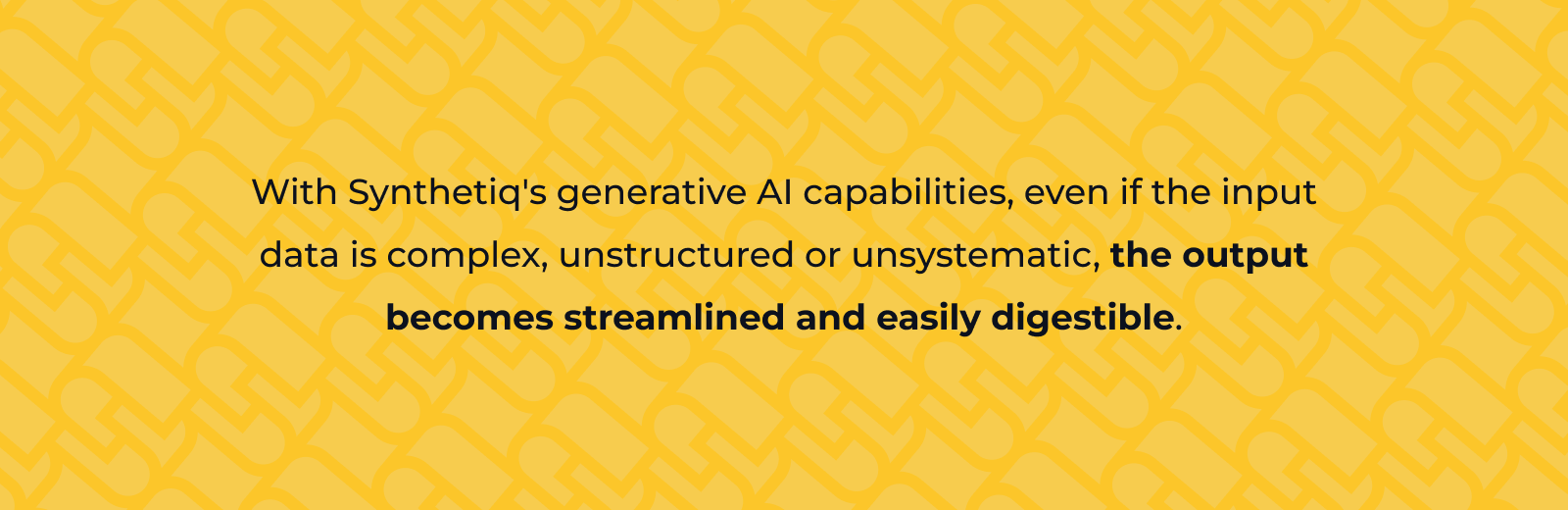 Generative AI and large language models ("LLMs"), innovative new artificial intelligence capabilities, have the power to analyze massive amounts of information, identify patterns and generate new, structured data based on its learnings. By integrating generative AI with our AI-powered OCR technology, Synthetiq takes data extraction and processing to a whole new level.